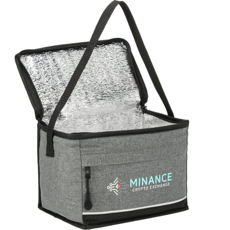 The Quarry 6 Can Lunch Cooler features a zippered front pocket and foil lining. This cooler can hold 6 cans.
