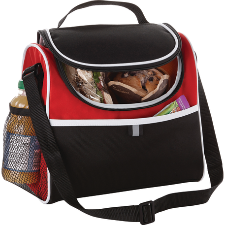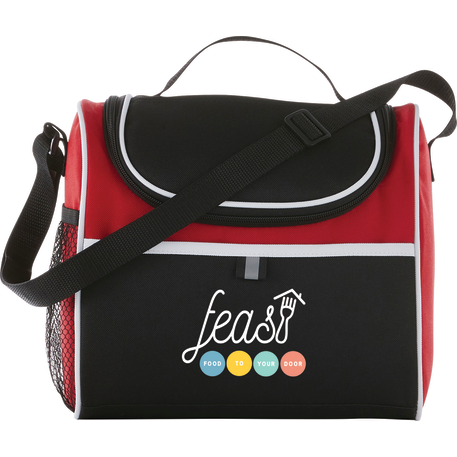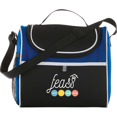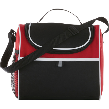 Insulated PEVA lining. Top grab handle. Side mesh pocket. Multiple decorating locations available. Two slip pockets on the front and top of cooler. Adjustable shoulder strap. Disclaimer: There may be minor variations in color of the actual product due to the nature of the fabric dyes, weaves and printing.