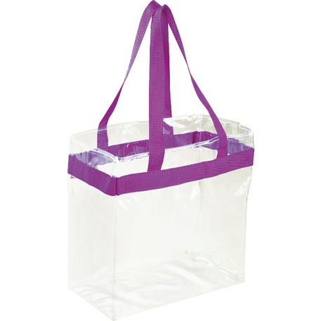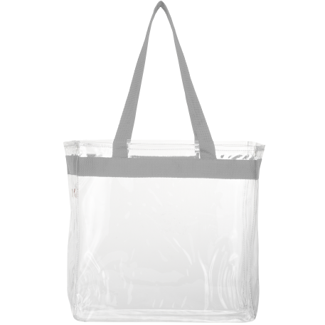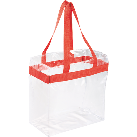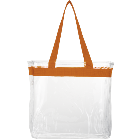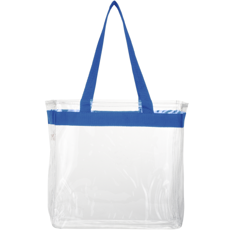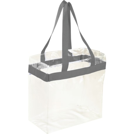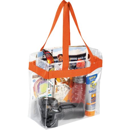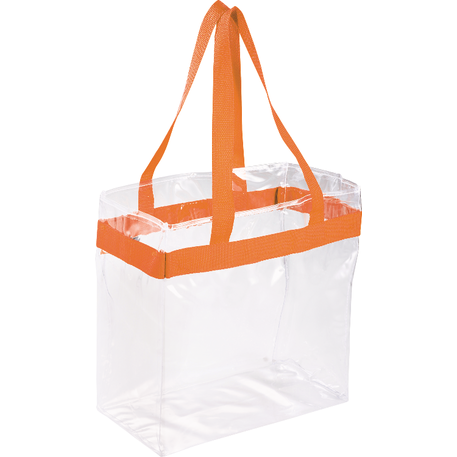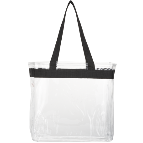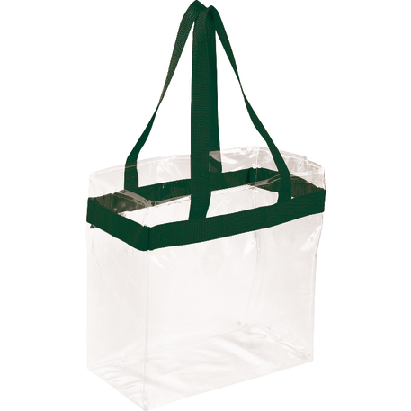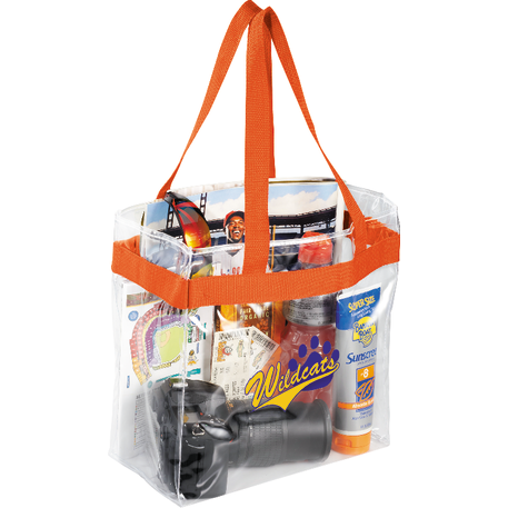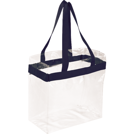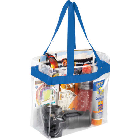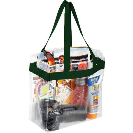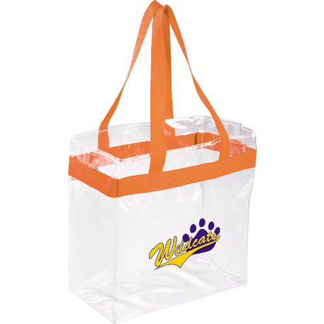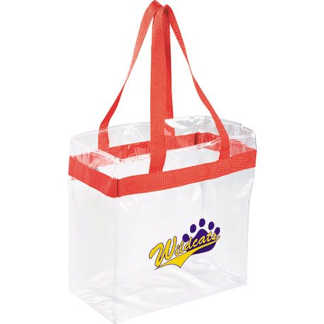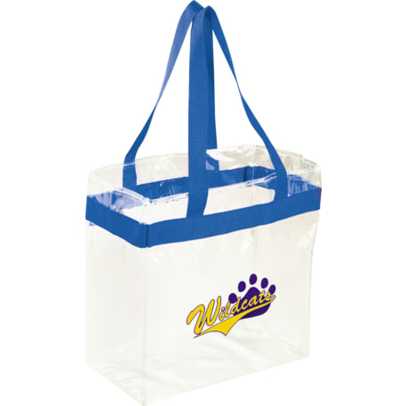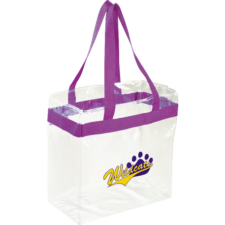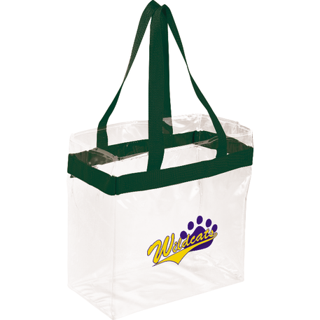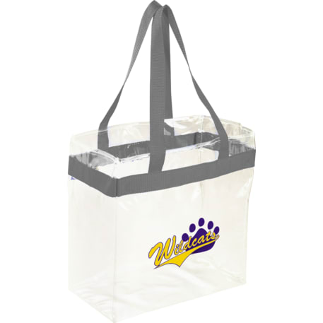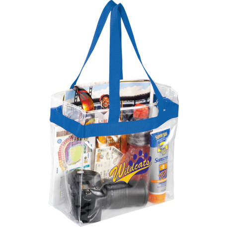 As part of Leed's exclusive Game Day Collection, this clear tote is perfect for fans packing their stadium and event day items safely. Also great for workplace safety. Open main compartment with sporty webbing trim and dual carrying handles. Note that if the bag is being carried into an NFL stadium, the NFL requires that logo sizes do not exceed 4.5" tall by 3.4" wide.