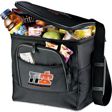 Perfect for your picnic and outdoor event needs. Zippered main compartment holds up to 24 cans. Zippered front pocket. Adjustable shoulder strap. Insulated PEVA lining. Collapses for easy storage.