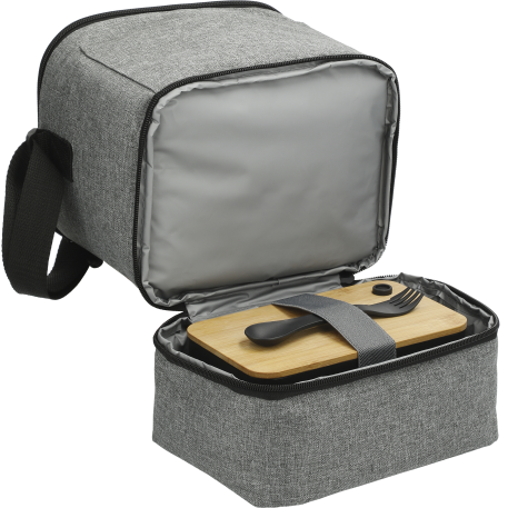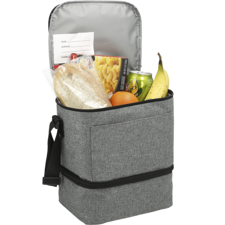 The Tundra Recycled Lunch Cooler features ample storage for all your lunch time goodies. This cooler features a top insulated zippered compartment, as well as a bottom insulated zippered compartment. The bottom compartment is perfect for your bento box. The front slash pocket is perfect for storing your mask. This cooler PEVA lining and exterior is made from RPET. Through a partnership with 1% For The Planet one percent of sales of this and all EcoSmart products will be donated to nonprofits dedicated to protecting the planet.