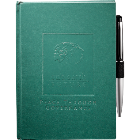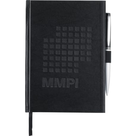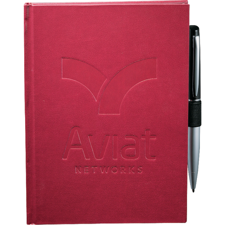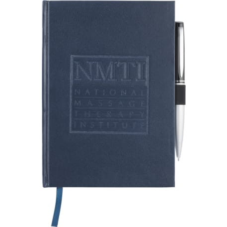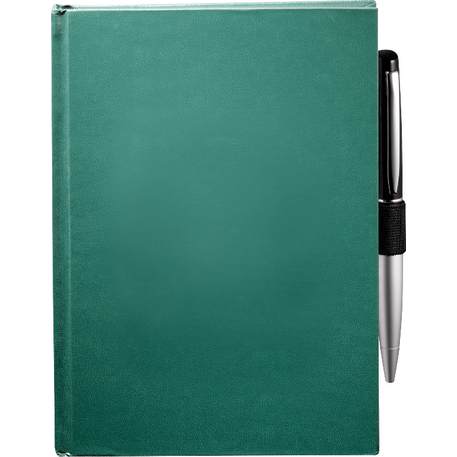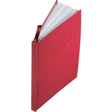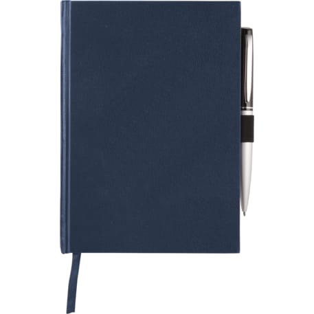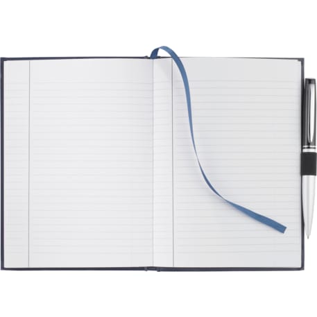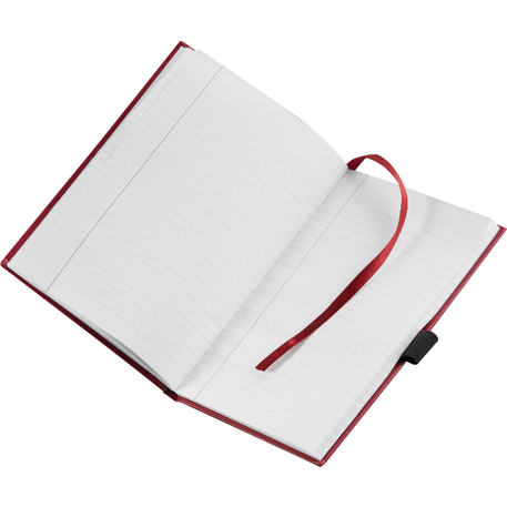 Hard cover, bound journal. Elastic pen loop. Ribbon page marker. Includes 72 sheets of white lined paper. Pen is not included.