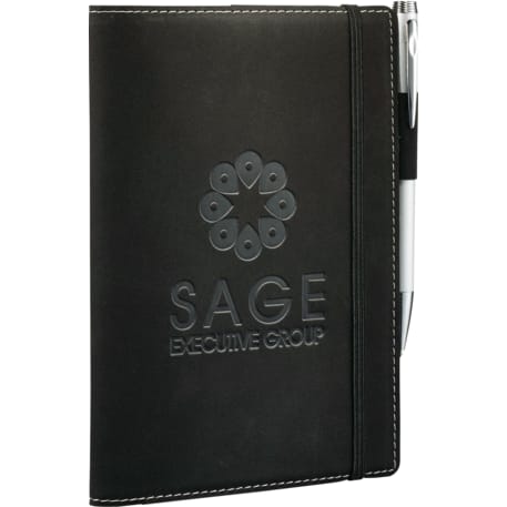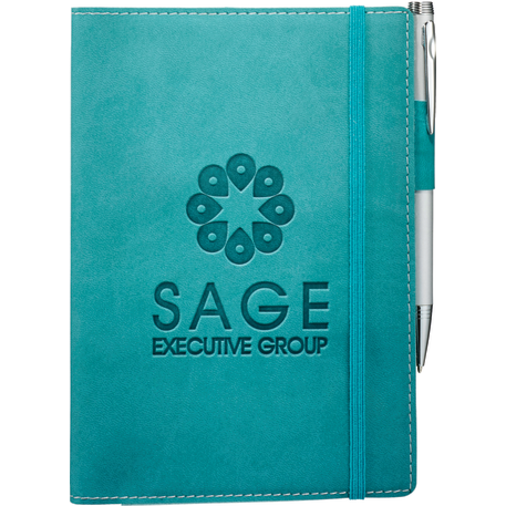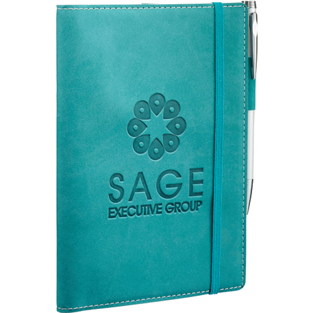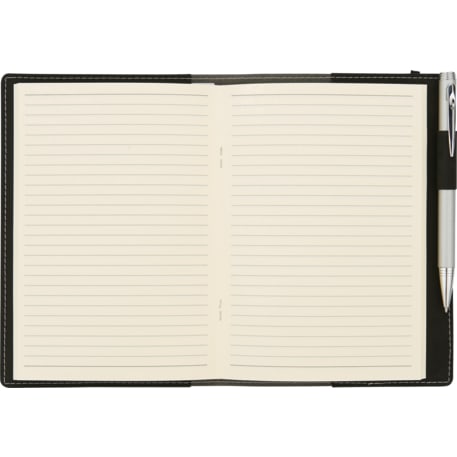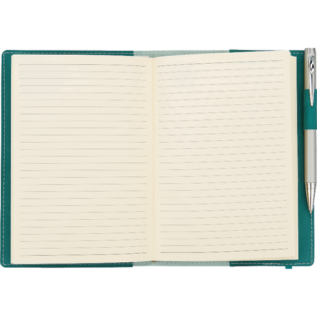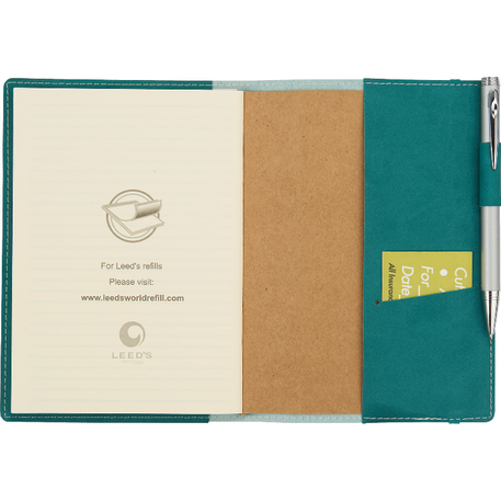 Flexible, soft cover refillable journal with built in elastic closure. Pen loop. Business card slot. Includes 60 sheets of cream lined paper. 5" x 7" paper refill. Refills available on leedsworldrefill, 9091-97RF.