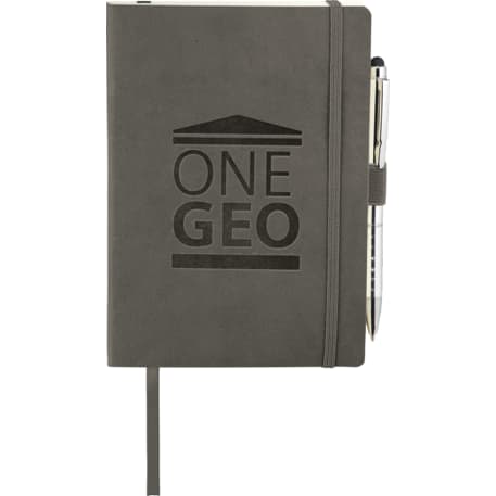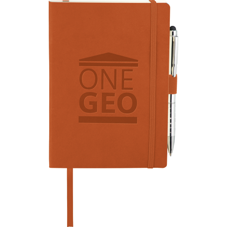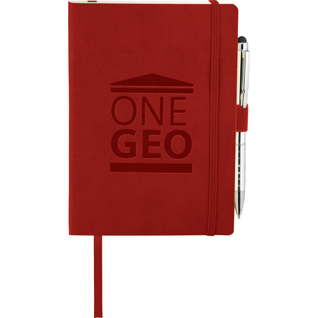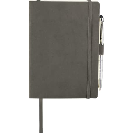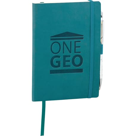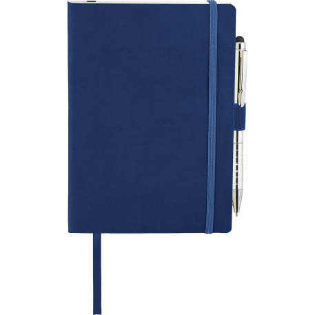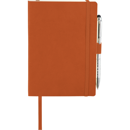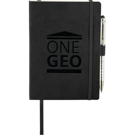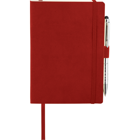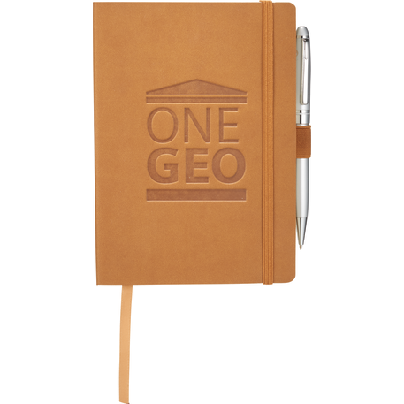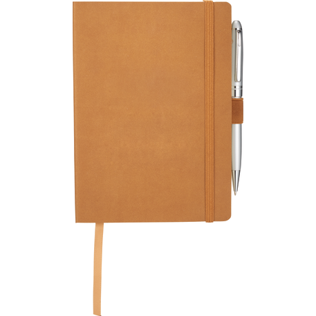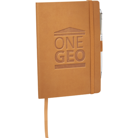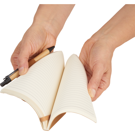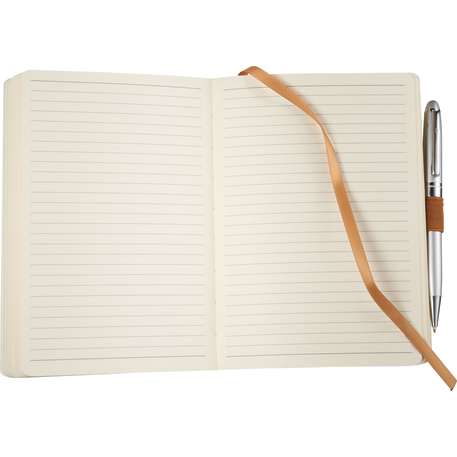Flexible, soft cover with built in elastic closure. Ribbon page marker.Pen loop. Document pocket on interior back cover. Includes 80 sheets of cream lined paper. Pen is not included.