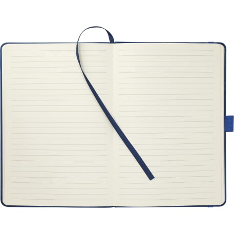 Smooth PU, hard cover journal. Front phone pocket with business card slot. Color matching elastic closure and ribbon page marker. 80 sheets of cream lined paper.