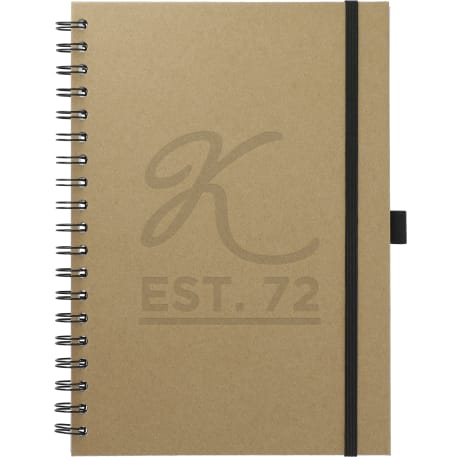 The 7" x 10" FSC® Mix Large Spiral JournalBook® features a FSC-certified craft paper cover with 70 sheets of white FSC-certified, soy-based ink lined paper. Includes black elastic closure and pen loop. Through a partnership with 1% For The Planet, one percent of sales of all EcoSmart® products are donated to environmental nonprofits. Due to the nature of the material, there may be color variances.