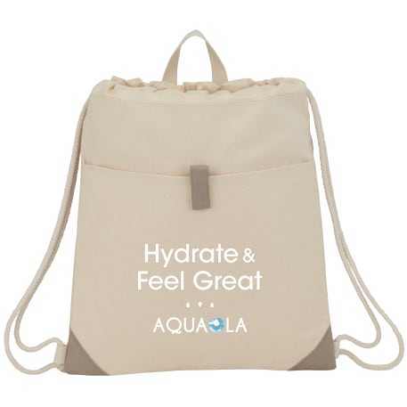 The Recycled Cotton Drawstring Bag is made from recycled 8 oz. cotton. Approximately 65% recycled pre-consumer cotton, 35% conventional cotton. This drawstring bag features deluxe cotton cords, a front slash pocket with hook and loop closure and a top grab handles. Through a partnership with 1% For The Planet, one percent of sales of this and all EcoSmart products will be donated to nonprofits dedicated to protecting the planet.