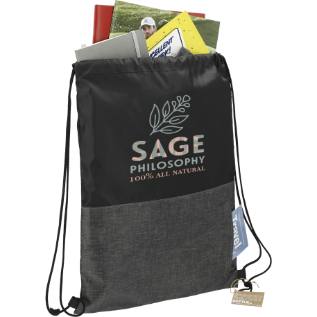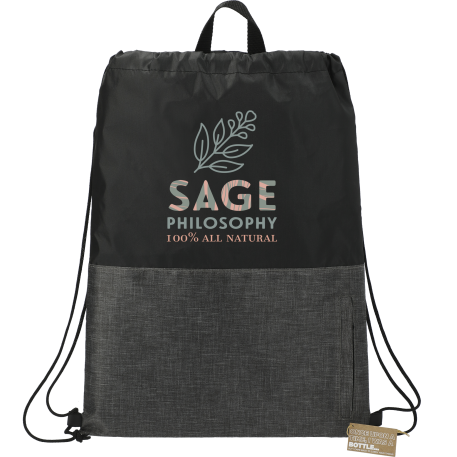 The Ash Zippered Recycled Drawstring Bag features a cinch closure with a vertical zippered front pocket. This drawstring bag is made from recycled water bottles. Through a partnership with 1% For The Planet one percent of sales of this and all EcoSmart products will be donated to nonprofits dedicated to protecting the planet.