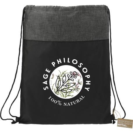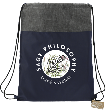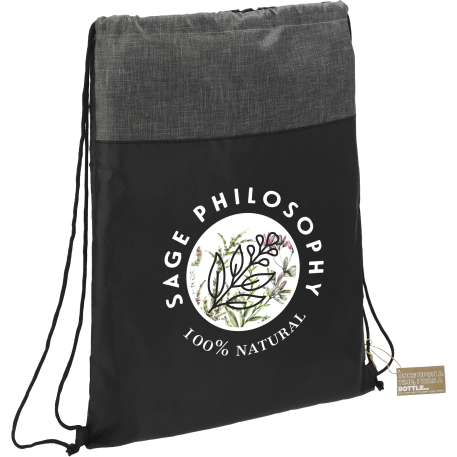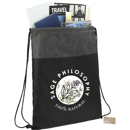 The Ash Recycled Drawstring Bag features a cinch closure and trendy graphite color blocking. This drawstring bag is made from recycled water bottles. Through a partnership with 1% For The Planet one percent of sales of this and all EcoSmart products will be donated to nonprofits dedicated to protecting the planet.