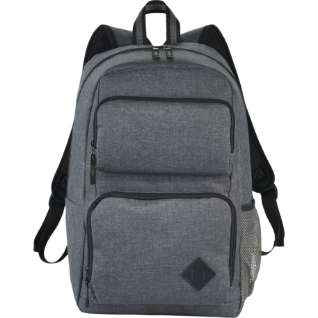 The Graphite Deluxe 15" Computer Backpack is a stylish backpack that offers on trend looks with exceptional value. Zippered main compartment with padded laptop sleeve holds up to a 15.6 inch computer, dedicated iPad®/tablet pocket with room for all your other business essentials. Two front zippered pockets are large enough for power banks, cables, pens and notecards. The two front pockets also offer flexible decorating locations. Side water bottle pocket. Top grab handle. Adjustable padded backpack straps. Disclaimer: There may be minor variations in color of the actual product due to the nature of the fabric dyes, weaves and printing.
