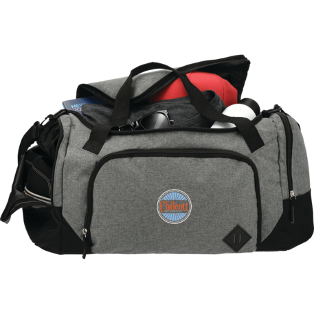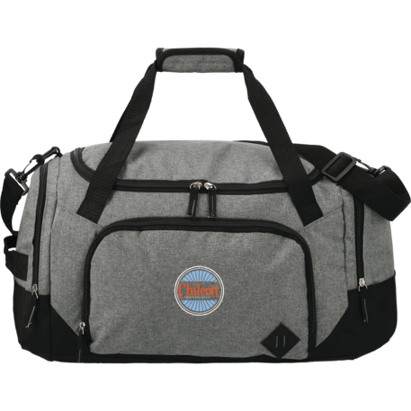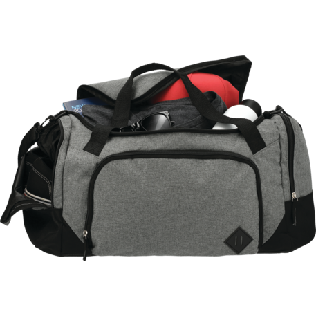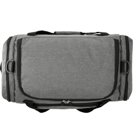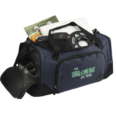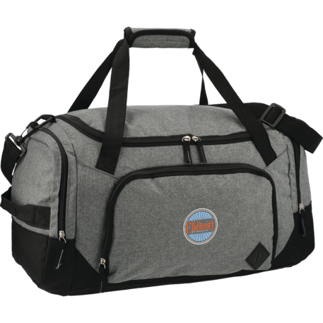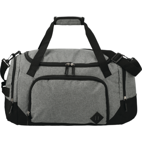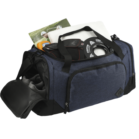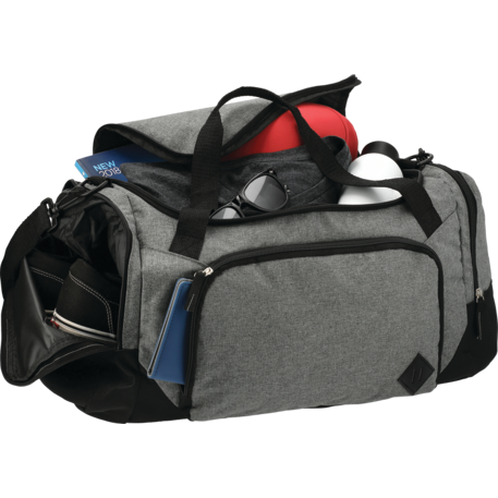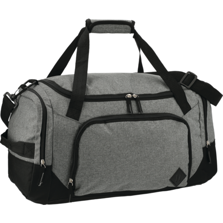 Heathered gray material. Large U-shaped opening. Dedicated side shoe pocket with grab handle. Removable adjustable shoulder strap. Side pocket. Front zippered pocket with signature Graphite patch.