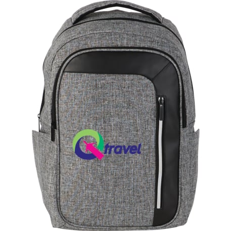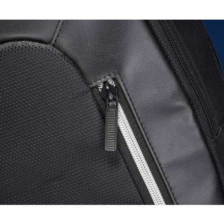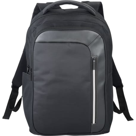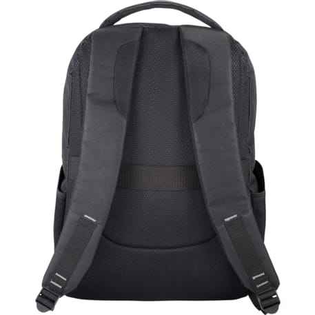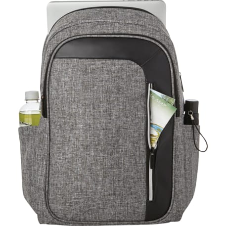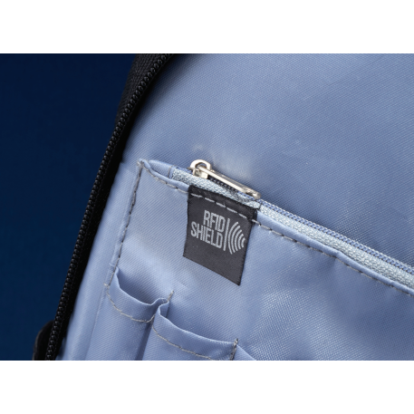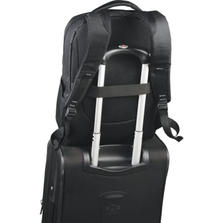 The Vault RFID Security 15" Computer Backpack will prohibit unauthorized access to your belongings. Zip through the airport or sit in a meeting – with sleek, contemporary styling and Top-Secret design elements, you're covered with RFID security technology. Standard features include a zippered main compartment that holds up to a 15 inch laptop as well as a separate padded compartment for your iPad® or tablet. Large front zippered pocket has organizational features that include a key fob and hidden zippered RFID blocking pocket to protect against identify theft of your credit cards and passport. Front vertical zipper is designed for quick access to the front pocket. Additional storage with two side pockets. Adjustable, padded backpack straps with webbing details that add functionality so you can clip on whatever else you need. Carry handle and trolley sleeve all for easier travel. Disclaimer: There may be minor variations in color of the actual product.