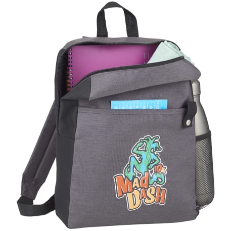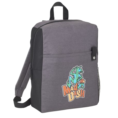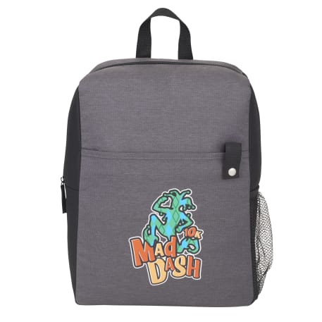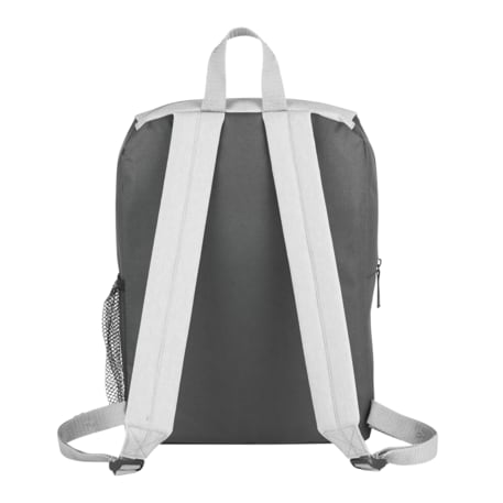 The Hopper Backpack features a zippered main compartment and trendy color-blocking. This bag also includes a front slash pocket, side mesh water bottle pocket and padded, adjustable shoulder straps.