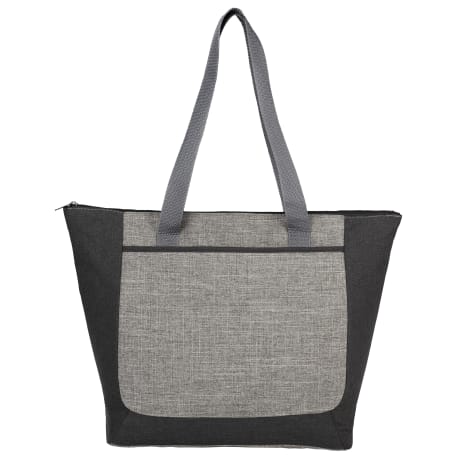 The Reclaim Recycled Zippered Tote exterior material is made from 100% rPET. This tote features a front slash pocket and a zippered main compartment. 11" handle drop. Through a partnership with 1% For The Planet, one percent of sales of this and all EcoSmart products will be donated to nonprofits dedicated to protecting the planet.