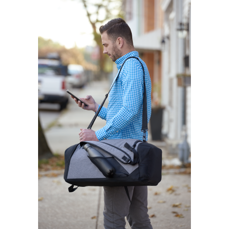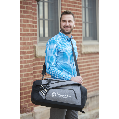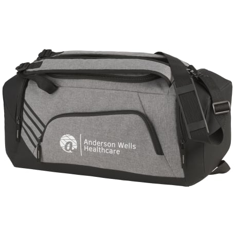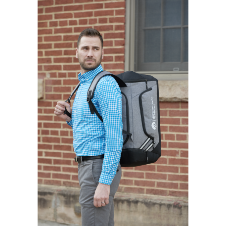 The Sebring Convertible Graphite Duffel gives you the best of both worlds - a duffel AND a backpack. This sporty convertible duffel features a roomy zippered main compartment, one side zippered pocket, reflective accents, a side zippered shoe pocket, and a front zippered pocket. The back includes a large mesh water bottle pocket.