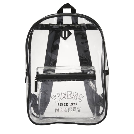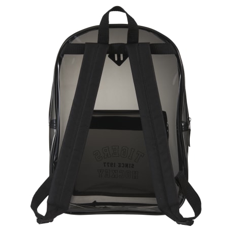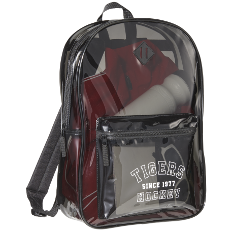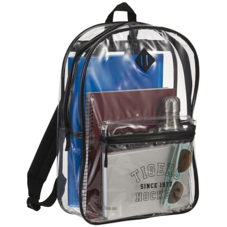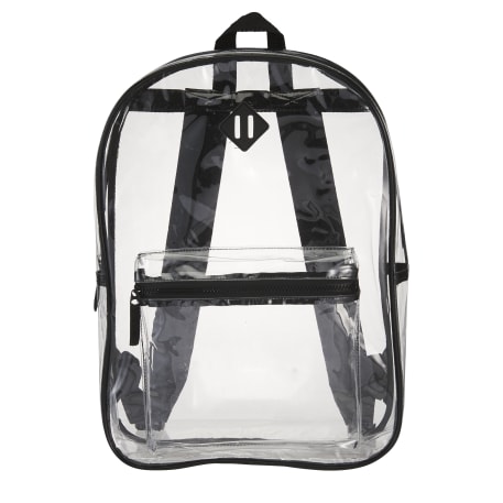 The Bayside Backpack is an on-trend, updated version of the classic clear backpack. This backpack features a premium vinyl lash tab and has a zippered main compartment as well as a zippered front pocket.