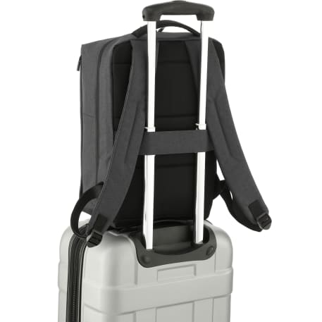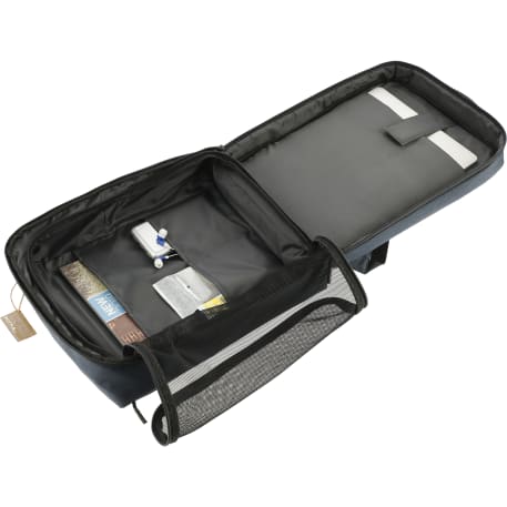 The AFT Recycled 15” Computer Backpack is sure to be your new go-to bag. This backpack features a zippered main compartment with a padded laptop sleep. In the main compartment you’ll also find a large zippered mesh pocket perfect for storing clothes for an overnight trip. The front of this backpack also features vertical 2 zippered pockets. One pocket features ample storage and organization while the other is a PEVA lined water bottle pocket. There’s also a smaller front zippered pocket for easy access to your essentials. This backpack is made from recycled water bottles. Through a partnership with 1% For The Planet, one percent of sales of this and all EcoSmart products will be donated to nonprofits dedicated to protecting the planet.