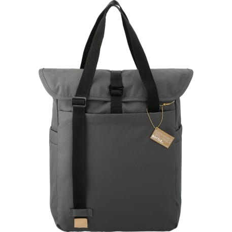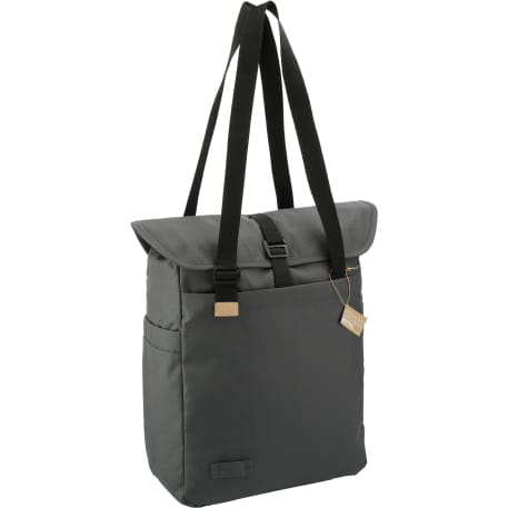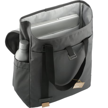 The Aft Recycled Computer Tote is made from eco-friendly RPET, so you can feel as good as you look while carrying it. Keep your essentials in the front zippered pocket and store your reusable water bottle in either of the side pockets. The main compartment features a padded 15" computer sleeve as well as a smaller padded sleeve for your tablet. Adjustable carry straps let you find the perfect length, and the easy-to-use G-hook secures the flap over the main compartment. Through a partnership with 1% For The Planet, one percent of sales of all EcoSmart® products are donated to environmental.