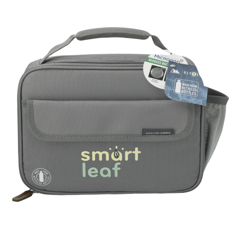 The Arctic Zone® Lunch Cooler features Repreve® Exterior Materials made from recycled plastic bottles. REPREVE® is the world’s leading recycled fiber, playing an important role in the fight to protect Earth. REPREVE® keeps bottles out of landfills and oceans, conserves electricity and water and reduces greenhouse emissions and petroleum use. The world's leading brands choose REPREVE® to drive product innovation by combining uncompromised performance with trusted sustainability. This cooler features an insulated, zippered main compartment that is large enough for your reusable lunch containers or bento boxes. Keep your favorite beverage in the side mesh pocket, and carry with ease using the top, padded handle. Keep your essentials in the front pocket with hook and loop closure. The interior of the lunch bag features high density thermal insulation, and an Ultra Safe® leak proof lining with Microban® to help protect against bacterial odors and stains and make the lining easier to clean.