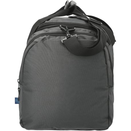 Saving the ocean one bag at a time! The Repreve® Ocean Duffel is made from recycled ocean plastic. This duffel features a roomy zippered main compartment, as well as two zippered side pockets for items like your shoes or accessories. Carry using the removeable, padded, adjustable shoulder strap or the carry grab handles. Through a partnership with 1% For The Planet one percent of sales of this and all EcoSmart products will be donated to nonprofits dedicated to protecting the planet.