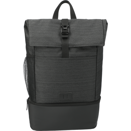 NBN stands for "No Brand Needed." The NBN Whitby Insulated 15" Computer Backpack gives you the best of both words - a top section that includes a dedicated padded 15" laptop compartment, as well as a zippered PEVA lined bottom cooler compartment. Perfect for heading back to school or the office, all your daily essentials can fit in the roll top compartment, while your bento box and drink for lunch can stay cool in the bottom. The front slash pocket is perfect for keeping your mask or keys nearby. This backpack features cutstom lining, a premium vinyl lash-tab, and adjustable padded shoulder straps. This bag includes an oversized zipper pull that's available to decoration. Inventory arriving 2/10/21