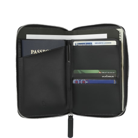 The Bellroy Travel Folio makes staying organized on the go easy. This folio fits 2 passports, 4-8 cards, cash and boarding passes. RFID Protection helps keep your information safe and secure. Keep your license and must have cards close in the quick access slots in the middle and store your other cards in te stacked storage at the back. A leather divider organizes documents and helps keep cash hidden. Made from premium, environmentally certified leather. Through a partnership with 1% For The Planet, one percent of sales of this and all EcoSmart products will be donated to nonprofits dedicated to protecting the planet.