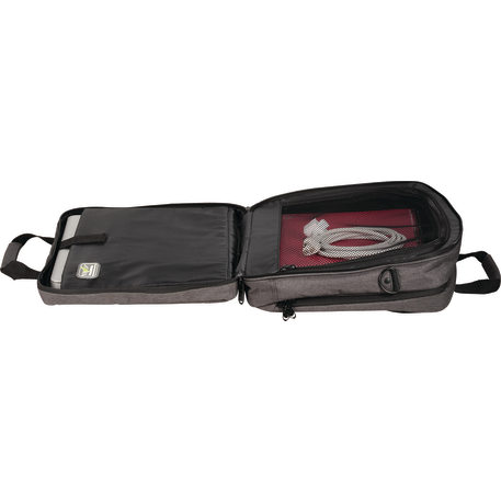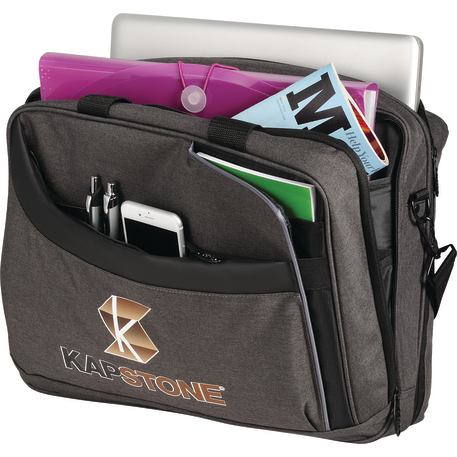 Laptop-only section unfolds lying flat on X-ray belt, expediting airport security. Holds most 15" laptops. Front compartment contains organization and file dividers. Front zippered pocket. Rear compartment with built-in laptop sleeve. Quick-access corner pocket. Rear trolley handle. Removable, adjustable shoulder strap. Two carry handles. Disclaimer: There may be minor variations in color of the actual product due to the nature of the fabric dyes, weaves and printing.