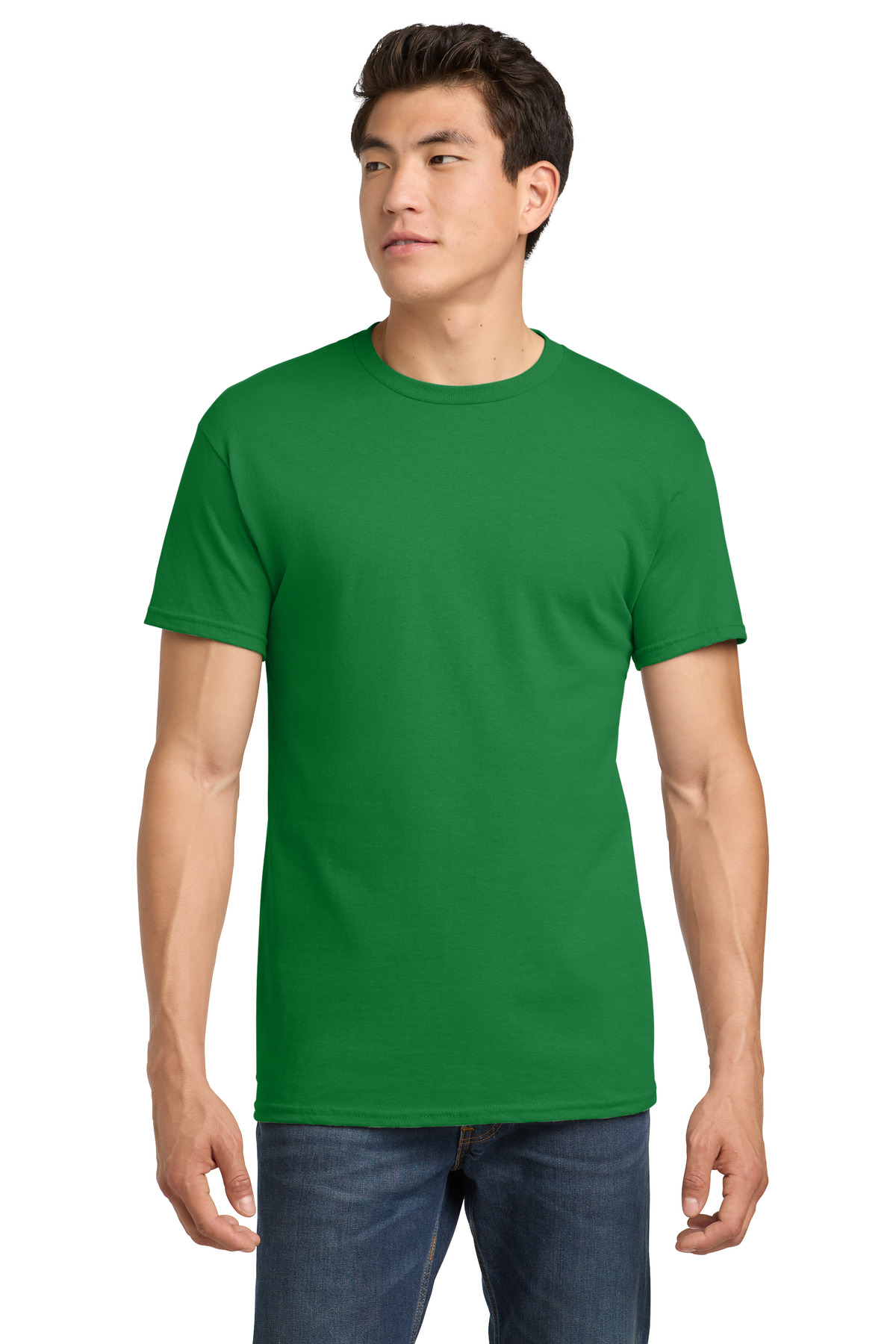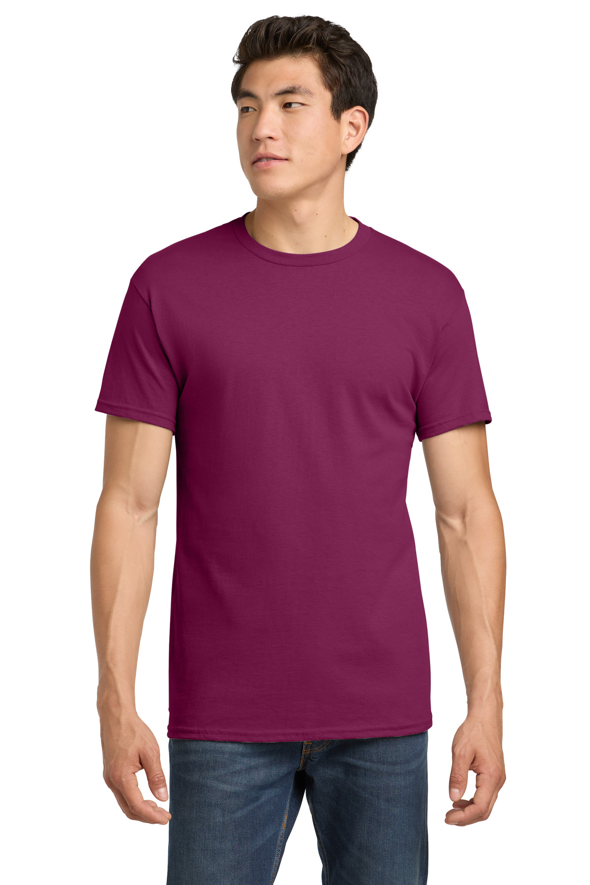 5.3-ounce 100% US cotton99/1 cotton/polyester (Ash) 90/10 cotton/polyester (Sport Grey Antique Cherry Red Antique Irish Green Antique Jade Dome Antique Orange Antique Sapphire)50/50 cotton/polyester (Blackberry Dark Heather Heather Military Green Heather Navy Heather Radiant Orchid Heather Red Heather Sapphire Lilac Midnight Neon Blue Neon Green Russet Sunset Tweed Safety Green Safety Orange Safety Pink Graphite Heather)Non-dyed fabric with visible specks of fibers and cotton seeds (Natural)Non-topstitched classic width rib collarTaped neck and shouldersRecycled high-performing black tear-away labelClassic fit seamless bodyPlease note: This product is transitioning from tear-away labels to recycled high-performing black tear-away labels. Your order may contain a combination of both labels.