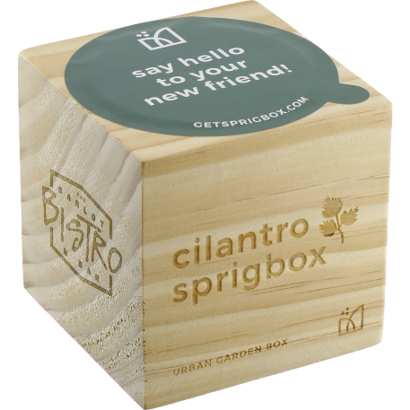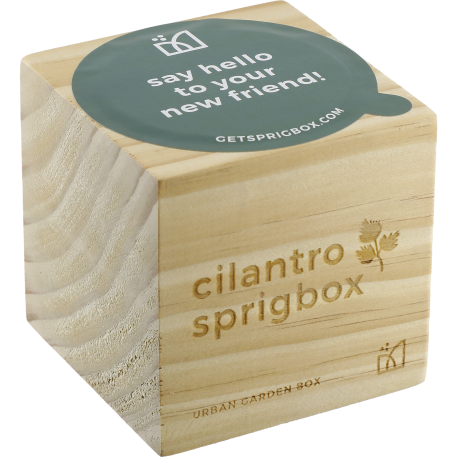 This Cilantro Sprigbox is an all inclusive garden kit containing natural seeds and a special growing media. The only thing missing is water and a sunny windowsill! Sprouts will begin to show in 14-21 days and you may be able to harvest your first leaves after 3 months. Water daily and enjoy watching it grow! Due to the nature of the wood material, variations in color and imprint may occur.