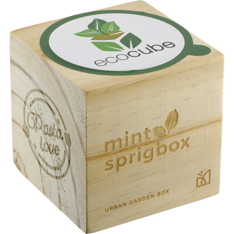 This Mint Sprigbox is an all-inclusive garden kit containing natural seeds and a special growing media. The only thing missing is water! Mint grows in shady areas and sunshine. Sprouts will begin to show in 14-21 days and you may be able to harvest your first leaves after 2 months. Water daily and enjoy watching it grow! Due to the nature of the wood material, variations in color and imprint may occur.