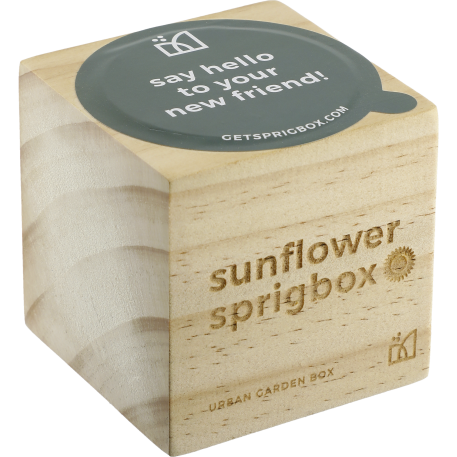 This Sunflower Sprigbox is an all-inclusive garden kit containing natural seeds and a special growing media. The only thing missing is water and a sunny windowsill. Sprouts will begin to show in 7-14 days and your flower might bloom after 3 months. Water daily and enjoy watching it grow! Due to the nature of the wood material, variations in color and imprint may occur.