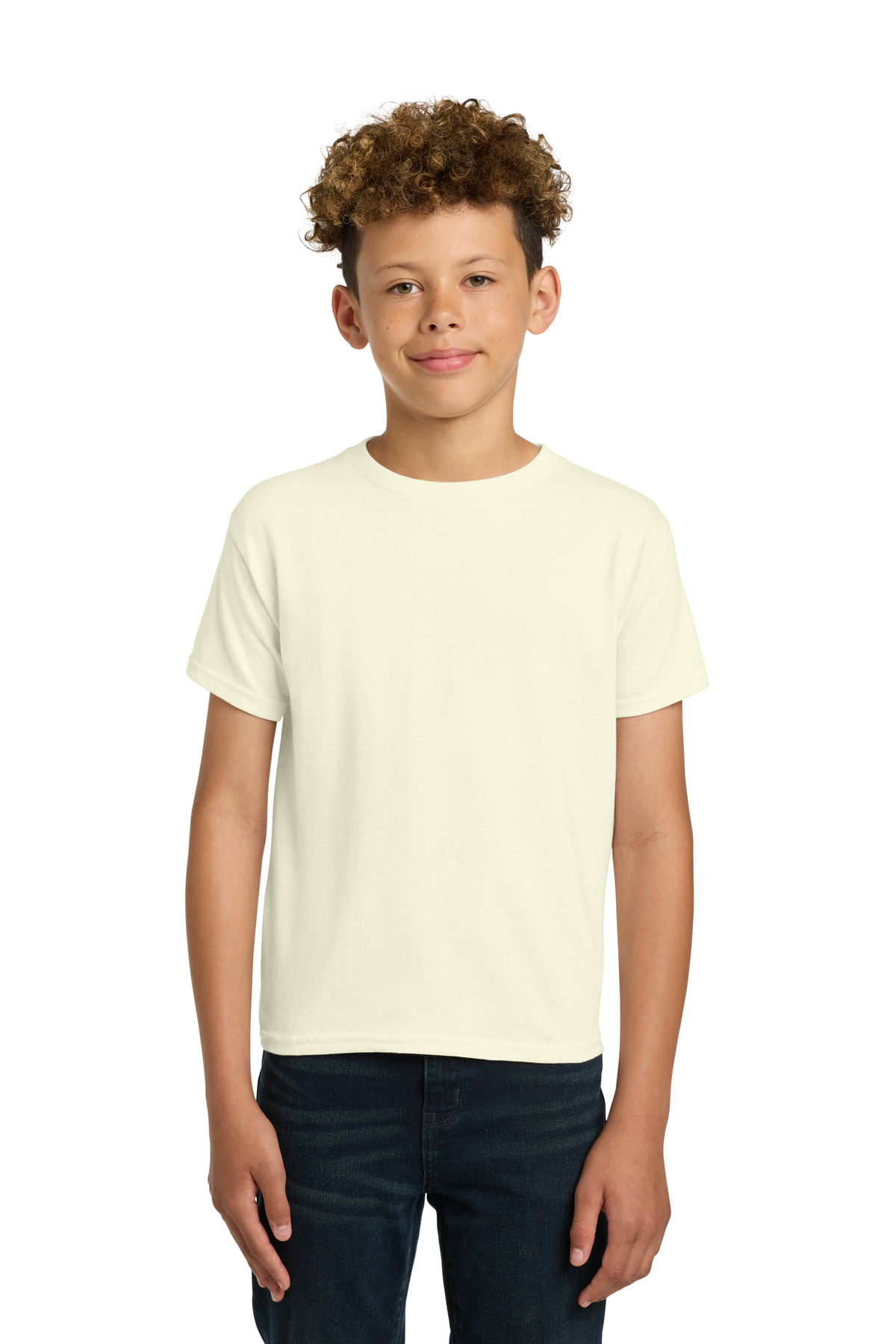 5.3-ounce 100% cotton 99/1 cotton/polyester (Ash)90/10 cotton/polyester (Sport Grey) 50/50 cotton/polyester (Heather Navy Heather Red Heather Sapphire Safety Green Safety Orange Graphite Heather Safety Pink Dark Heather)Non-dyed fabric with visible specks of fibers and cotton seeds (Natural)Non-topstitched classic width rib collarTaped neck and shouldersRecycled high-performing black tear-away labelClassic fit seamless bodyPlease note: This product is transitioning from tear-away labels to recycled high-performing black tear-away labels. Your order may contain a combination of both labels.