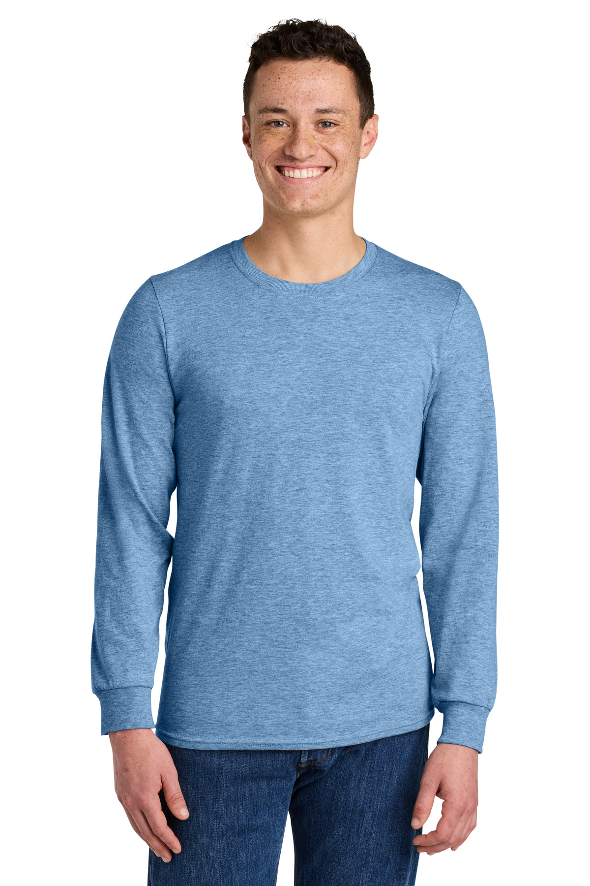 5.2-ounce 50/50 combed ring spun cotton/polyMade with sustainably sourced USA-grown cottonMoisture-wickingClassic fitTear-away label1x1 rib knit collar and cuffsShoulder to shoulder tapingDouble-needle sleeves and hem