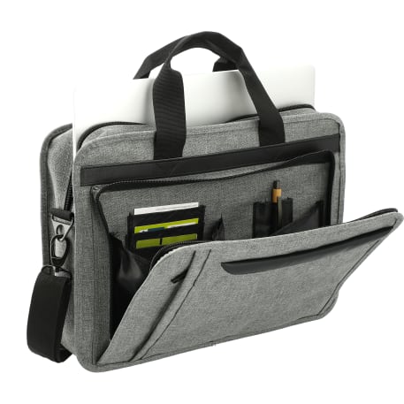 Full front organizer and file dividers for accessories and documents. Padded computer compartment (holds a 15" laptop). Detachable, adjustable shoulder strap.Disclaimer: There may be minor variations in color of the actual product due to the nature of the fabric dyes, weaves and printing.