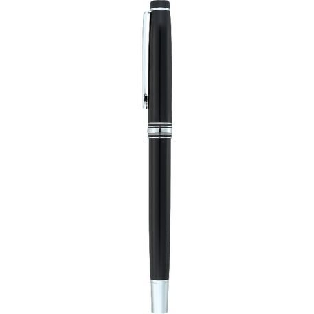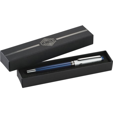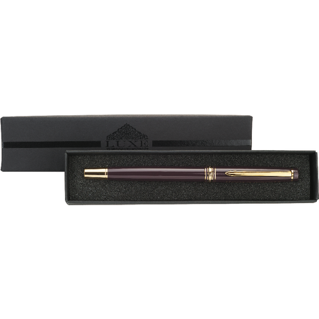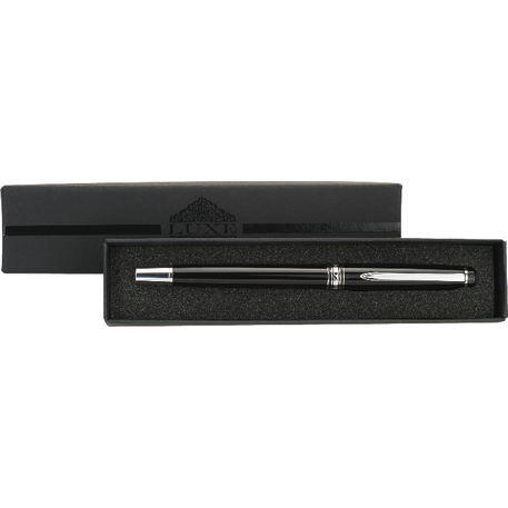 Exclusive Luxe design. Classic styling with removable brass cap. Includes premium blue ink cartridge and Luxe gift box. 0.7mm pen tip. Laser finish is shiny chrome.