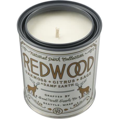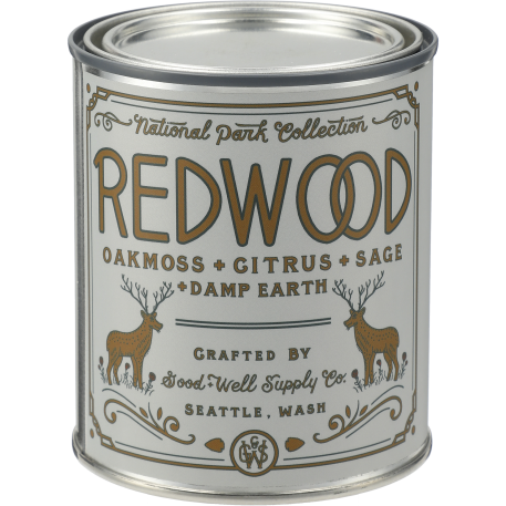 All natural soy and hand crafted this candle is ethically sourced and produced. It is 100% eco friendly, 100% recyclable and made in Seattle, WA, USA. Inspired by Redwood National Park the scent is composed of oakmoss, sage, citrus and damp earth. In order to preserve the national parks these candles are inspired by Well & Good Supply Co. makes annual donations to the National Park Foundation. 80+ hour burn time.