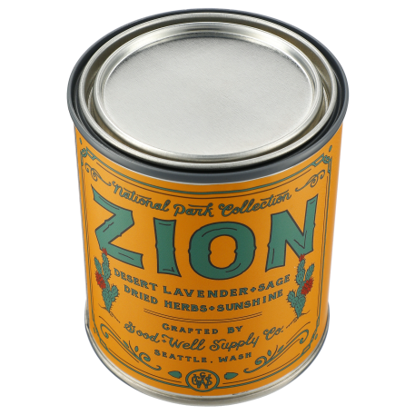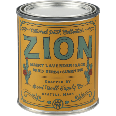 All natural soy and hand crafted this candle is ethically sourced and produced. It is 100% eco friendly, 100% recyclable and made in Seattle, WA, USA. Inspired by Zion National Park the scent is composed of desert lavender, sage and dried herbs. In order to preserve the national parks these candles are inspired by Well & Good Supply Co. makes annual donations to the National Park Foundation. 80+ hour burn time.
