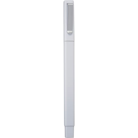 Square barrel with removable pen cap. Metal pen clip allows for this pen to be inserted into a journal spine or on front cover. Includes premium black ballpoint ink cartridge and 1.0mm pen tip.