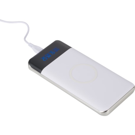 The Constant 10000 mAh Wireless Power Bank with Display contains a rechargeable lithium polymer battery (37Wh) which works as a charging pad or a power bank. It features an LED display to show remaining capacity percentage. Two outputs: 5V/1A; 5V/2A. Supports wireless charging at up to 1A for devices including (but not limited to): All iPhone 8/X/11/12/13 Series * Samsung Galaxy Note5/S6/S6 Edge/S6 Edge+/S7/S7 Edge/S8/S8+/S9/S9+/Note 9 * Google Nexus 5/6/7 * HTC Droid DNA, 8X * LG G3/G4, Lucid 2/3 * Nokia Lumia 920/930 *. To charge older iPhone models without wireless technology, an external Qi-standard wireless charging receiver or receiver case is required. Works with any smartphone or tablet, even ones without wireless charging, using the normal power bank capabilities. Works with most plastic phone cases on. Micro-USB-to-USB charging cable. Power banks are permitted in carry-on luggage only, and at the discretion of TSA agents. Please charge power bank before initial use.