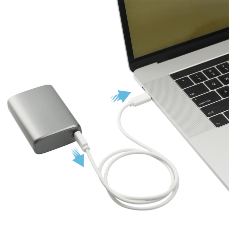 The Tron Mini 9600 mAh PD Power Bank features a 9,600 mAh/35.52Wh Grade A Lithium Polymer battery with 18W max output for smartphones compatible with fast charging. It even provides enough power to charge a laptop with a Type-C port. The power bank is compact enough to fit in your pocket. USB-A Output: 5V/3A, 9V/2A, 12V/1.5A; Type-C Input: 5V/2.4A,9V/2A; Type C Output: 5V/3A, 9V/2A,12V/1.5A. Includes 2.62 foot Type-C-to-Type-C cable. Power banks are permitted in carry-on luggage only, and at the discretion of TSA agents. Please charge the power bank before initial use.