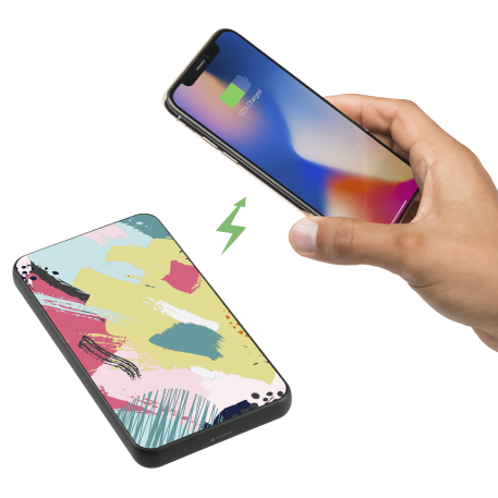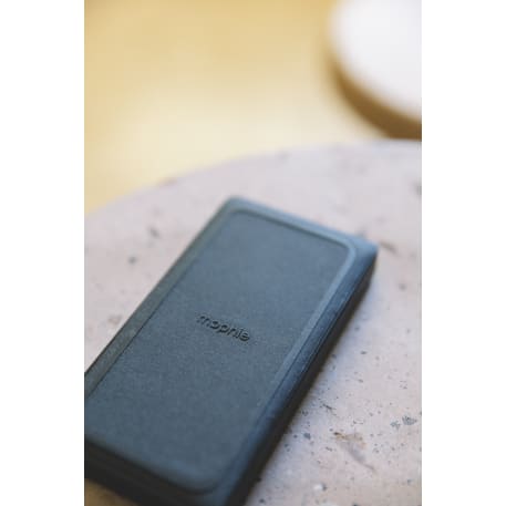The mophie® 5000 mAh Wireless Power Bank has a rechargeable lithium polymer battery that can work as a wireless charging pad or a regular power bank on the go. It works with any smartphone or tablet – even ones without wireless technology – through the normal power bank capabilities. The wireless charging function works with most plastic phone cases on. USB-A-to-Type-C cable included. Power banks are permitted in carry-on luggage only, and at the discretion of TSA agents. Qi-certified. Please charge power bank before initial use.