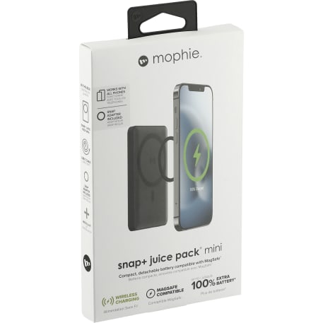 The mophie® Snap 5000 mAh Wireless Power Bank has a rechargeable lithium polymer battery that works as a charging pad or a regular power bank on the go (18.5W). The inside magnetic hold ensures accurate placement for iPhone 12/13 series. The included snap adapter can easily attach to the back of a non-MagSafe compatible iPhone or any other smartphones. The Type-C port is compatible as an input and output for charge and discharge. USB-A-to-Type-C cable included. Works with most plastic phone cases on. Packaged in a premium gift box. Power banks are permitted in carry-on luggage only, and at the discretion of TSA agents. Please charge power bank before initial use.