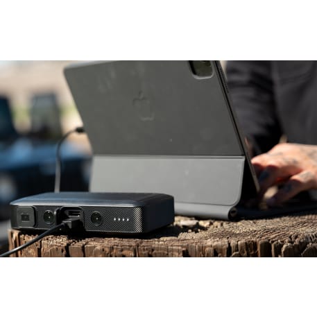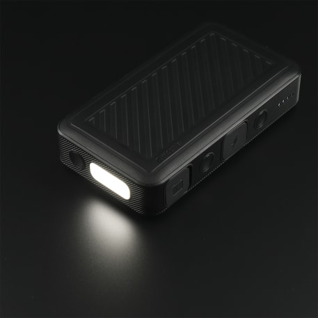 The mophie® Powerstation Go Rugged Compact has 8100 mAh/29.9Wh rechargeable lithium battery and works as a regular power bank with dual USB-A outputs and floodlight. It includes jumper cables that can jump start a full-sized truck and 12V vehicle batteries in seconds. Also includes UL listed AC wall plug, carrying pouch and USB-A-to-Type-C cable. Packaged in a premium gift box. Power banks are permitted in carry-on luggage only, and at the discretion of TSA agents. Please charge power bank before initial use.