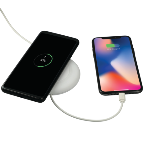 The Nebula Wireless Charging Pad allows you to charge your smartphone without the cables. At the same time, you could charge phones through integrated 2-in-1 cable wrapped into the silicone cover. 2-in-1 cable is compatible for both Apple® iOS and Android devices. Supports 5W wireless charging for devices including (but not limited to): All iPhone 8/X/11/12/13 Series * Samsung Galaxy Note5/S6/S6 Edge/S6 Edge+/S7/S7 Edge/S8/S8+/S9/S9+/Note 9 * Google Nexus 5/6/7 * HTC Droid DNA, 8X * LG G3/G4, Lucid 2/3 * Nokia Lumia 920/930 *. If you want to charge an iPhone series before iPhone 8 with wireless technology, an external wireless charging receiver or receiver case is required. It works with most plastic phone cases on.