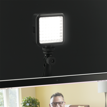 The Laptop & Tablet Portable Video Light instantly increases the clarity of your laptop or tablet camera. Making it the perfect accessory for your laptop or tablet. With virtual meetings becoming the new “norm” the light can be used for video conferences through Skype, Teams, or Zoom! The 49 built in LED Lights can be adjusted to increase the brightness of the lights. The Light can be mounted to a laptop, tablet, or camera with the included mounting accessories. The light includes 2 AA batteries that will provide up to 160 minutes of continuous use. Color Temperature: 6000K. 5.5Watt Max Output.