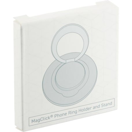 The MagClick® Phone Ring Holder and Stand can magnetically attach to the back of iPhone 12/13 models or any MagSafe case. The ring can flip 180 degrees and rotate 360 degrees to create the most comfortable angle to support your phone in your hand or on a flat surface. The ring holder and stand can be easily removed so you can wirelessly charge your phone. Even better, it won’t leave behind residue like other ring holders and stands.