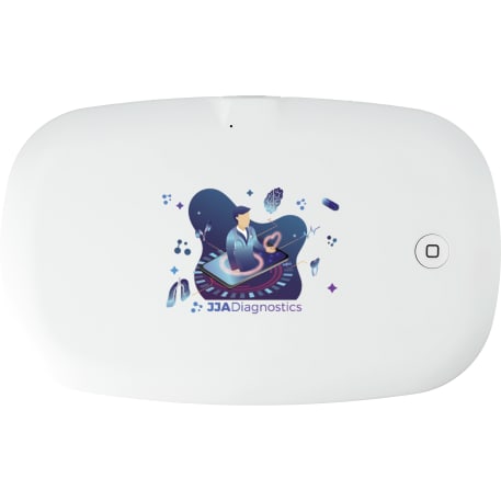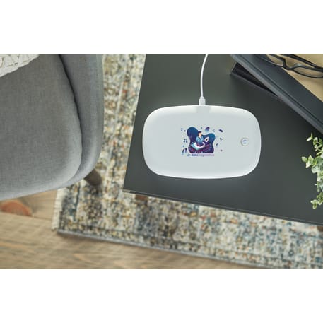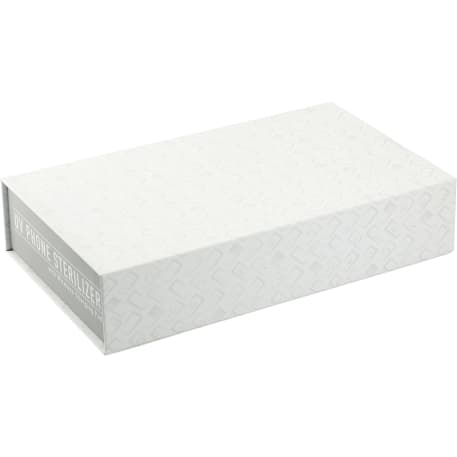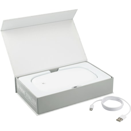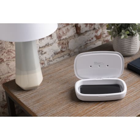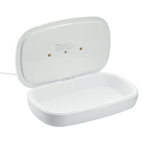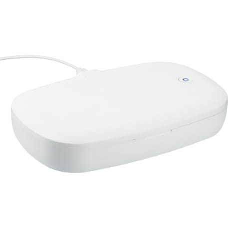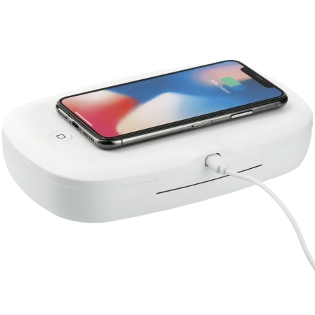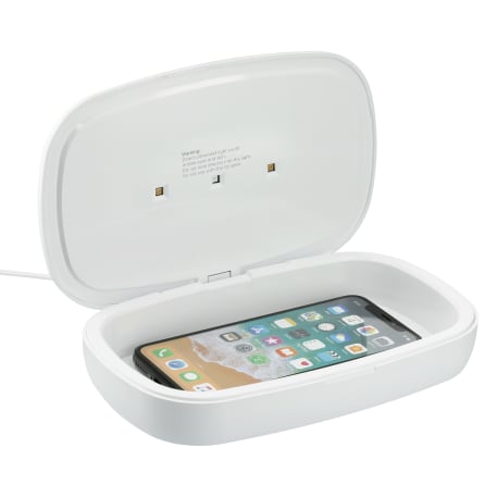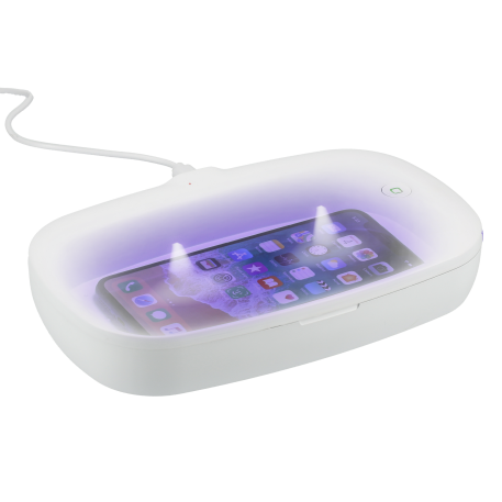 This UV Phone Sanitizer with Wireless Charging Pad uses UV-C light technology for sanitization to kill 99% of microorganisms tested. Two UV germicidal LEDs (270-280nm wavelength) are used for optimal sanitization. Press the button once for a short 90 second sanitization. Press the button twice for a 5-minute-deep clean sanitization. It can sanitize almost anything that fits inside (7.5" L * 4" W * 1" H) such as large phones (iPhone 12 Pro Max), keys, credit cards, watches, eyeglasses, jewelry, etc.. The sanitization will be stopped automatically once the lid is lifted to avoid UV light exposure. The wireless pad supports 5W wireless charging and works with most plastic phone cases. Includes a 39" USB to Type C charging cable. Available for shipment within the United States (including Alaska Hawaii & Puerto Rico). Not available for export.