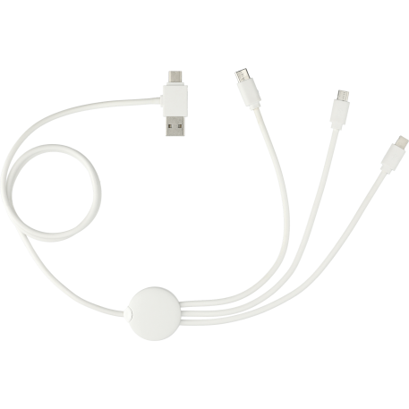 The 5-in-1 Charging Cable with Coating includes a USB-A tip and Type-C Input tip on one side and the other side includes a 2-in-1 dual compatible tip for both Apple® iOS and Android devices (up to 2A current), a micro tip (up to 3A current) and a Type-C Output tip (up to 3A current) . Cable length 39". Available for shipment within the United States (including Alaska Hawaii & Puerto Rico). Not available for export. This product contains a preservative applied as a coating only to protect the product. Antimicrobial properties are built in to inhibit the growth of bacteria that may damage this item. The antimicrobial properties do not protect users or others against bacteria, viruses, germs, or other disease organisms.