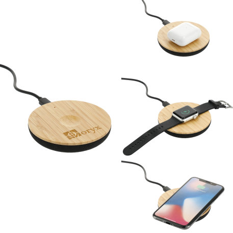 The Bamboo Universal Wireless Charging Pad allows you to charge your smartphone, TWS earbuds with wireless charging, or a smart watch without the cables. Supports wireless charging at up to 5W for devices including (but not limited to): All iPhone 8/X/11/12/13 Series*Samsung Galaxy Note5/S6/S6 Edge/S6 Edge+/S7/S7 Edge/S8/S8+/S9/9+/Note 9 * iWatch 1 to 7 (running OS 8.1 software and below)* Airpods 2, 3, Pro. If you want to charge an iPhone series before iPhone 8 with wireless technology, an external wireless charging receiver or receiver case is required. It works with most plastic phone cases on. Includes 39" 3A USB to Micro charging cable. It is recommended to use quick charge power adapter (10W at least). Packaged in a FSC®-certified premium gift box. Due to the nature of the bamboo material, variations in laser imprinting quality may occur. Through a partnership with 1% For The Planet, one percent of sales of all EcoSmart® products are donated to environmental nonprofits.