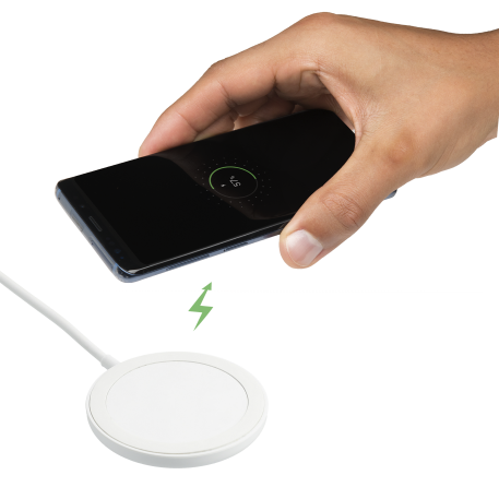 The MagClick™ Pro Fast Wireless Charging Pad can be attached to iPhone 12 models magnetically for wireless charging. It supports three different wireless charging modes: 7.5W for All iPhone 8/X/11/12/13 Series; 10W for Samsung Galaxy S9/S9 Plus/S8/S8 Plus/Note 8/9 and more, and 5W standard charging for all other enabled devices. Includes a 39-inch integrated Type-C charging cable. For fast charging, a 20W Type-C power adapter is recommended. (7143-23 sold separately.)